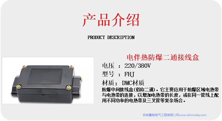 - 商品名稱:電伴熱帶二通接線盒